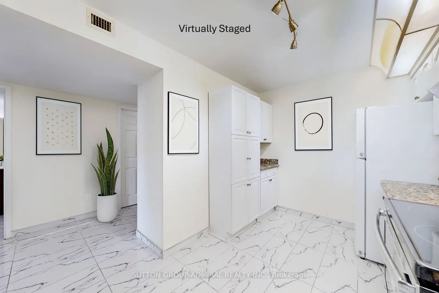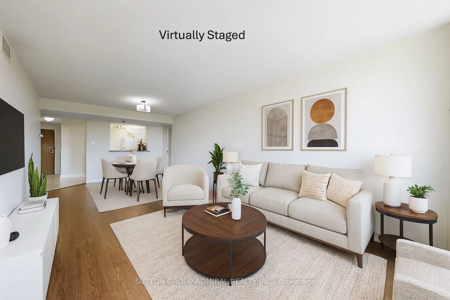 Welcome to the Riviera Club, where everyday feels like a vacation! This 2+1 bedroom, 2 bath suite boasts 1,387 sq ft that feels more like a house without all the maintenance. Enjoy resort-style amenities including 24/7 concierge, indoor/outdoor pools, sauna, squash & tennis courts, tons of visitors ...parking and more. The bright renovated kitchen screams cook in me; with granite counters, tile backsplash, porcelain floors, and a pass-through to the dining room, so you're never far from the action. Open-concept living/dining areas make hosting family and friends effortless. The massive primary retreat features 2 giant walk-in closets and a fully renovated 5-piece ensuite, worthy of its own spa day. The desirable split bedroom layout offers maximum privacy, making it ideal for families, guests, or a home office setup. Need space for kids, grandkids, or that oversized sectional? No problem. There's even an enclosed solarium with built-ins, a huge utility room, and an updated main bath with glass shower. Enjoy lush greenery views from your private balcony. Steps to Scarborough Town Centre, minutes to Hwy 401, TTC, GO, and future subway. Downsizers, upsizers, first-timers and even investors will find this one checks all the boxes. Warning: you may need to buy more furniture! Best value in the area!!! Buy today and appreciate tomorrow. (Some photos are virtually staged).